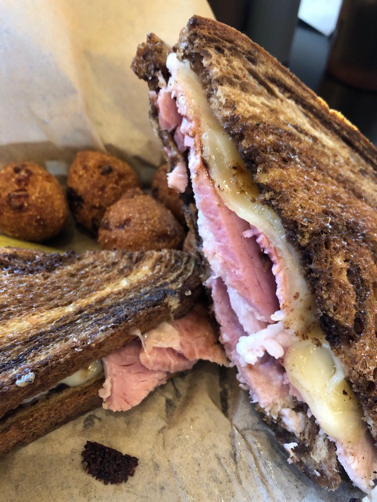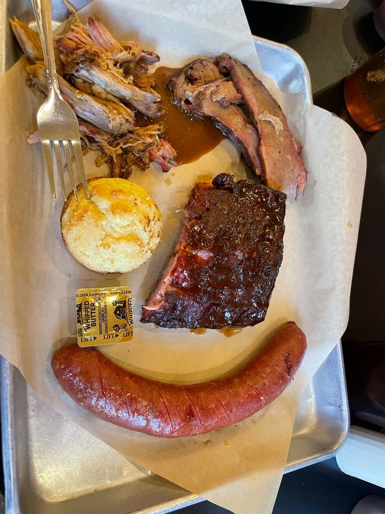 The menu is a delight for BBQ enthusiasts and vegetarians alike. Signature dishes such as The Big Ray sandwich, overflowing with three types of meat, and the sought-after burnt ends are not to be missed. The pulled chicken sandwich paired with sweet potato fries dipped in praline sauce keeps diners coming back for more. With a variety of options, including vegetarian dishes and a selection of sauces, there's something to satisfy everyone's palate.